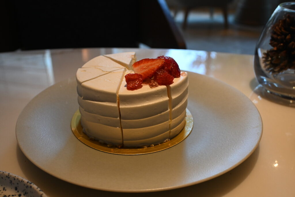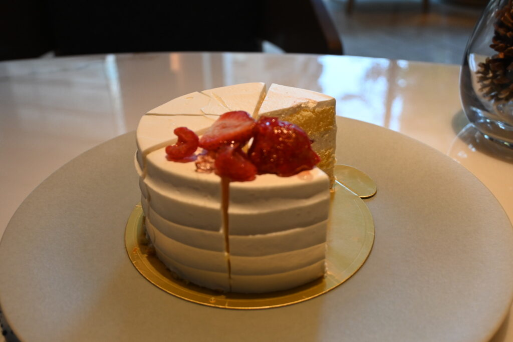 誕生日ケーキは無料とは思えないクオリティ。見た目も味も素晴らしく、カットした残りは持ち帰り用に包んでくれるサービスもありました。