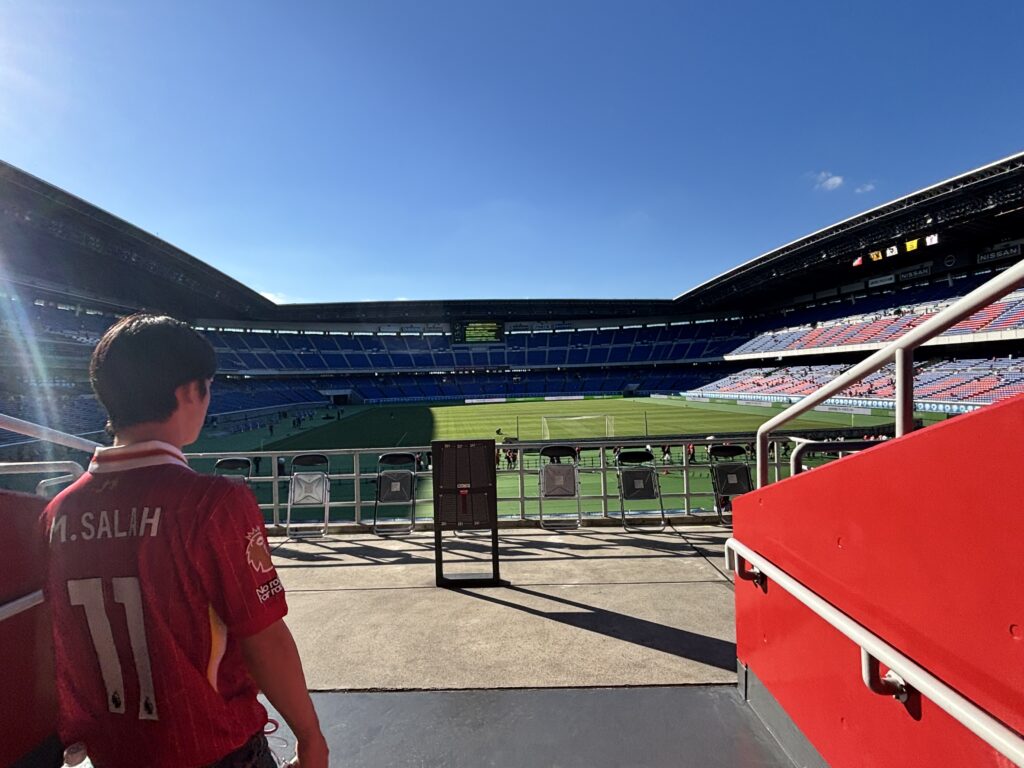 試合当日、スタジアムに着いた瞬間からテンションは最高潮。会場周辺には赤いユニフォームに身を包んだリバプールサポーターが大勢いて、すでに現地のような雰囲気が漂っていた。そしてキックオフ前、スタンドが一体となって歌う「You’ll Never Walk Alone」には鳥肌が立った。海外の映像で何度も見たあの光景を、自分がその一部として体感していることに、胸が熱くなった。